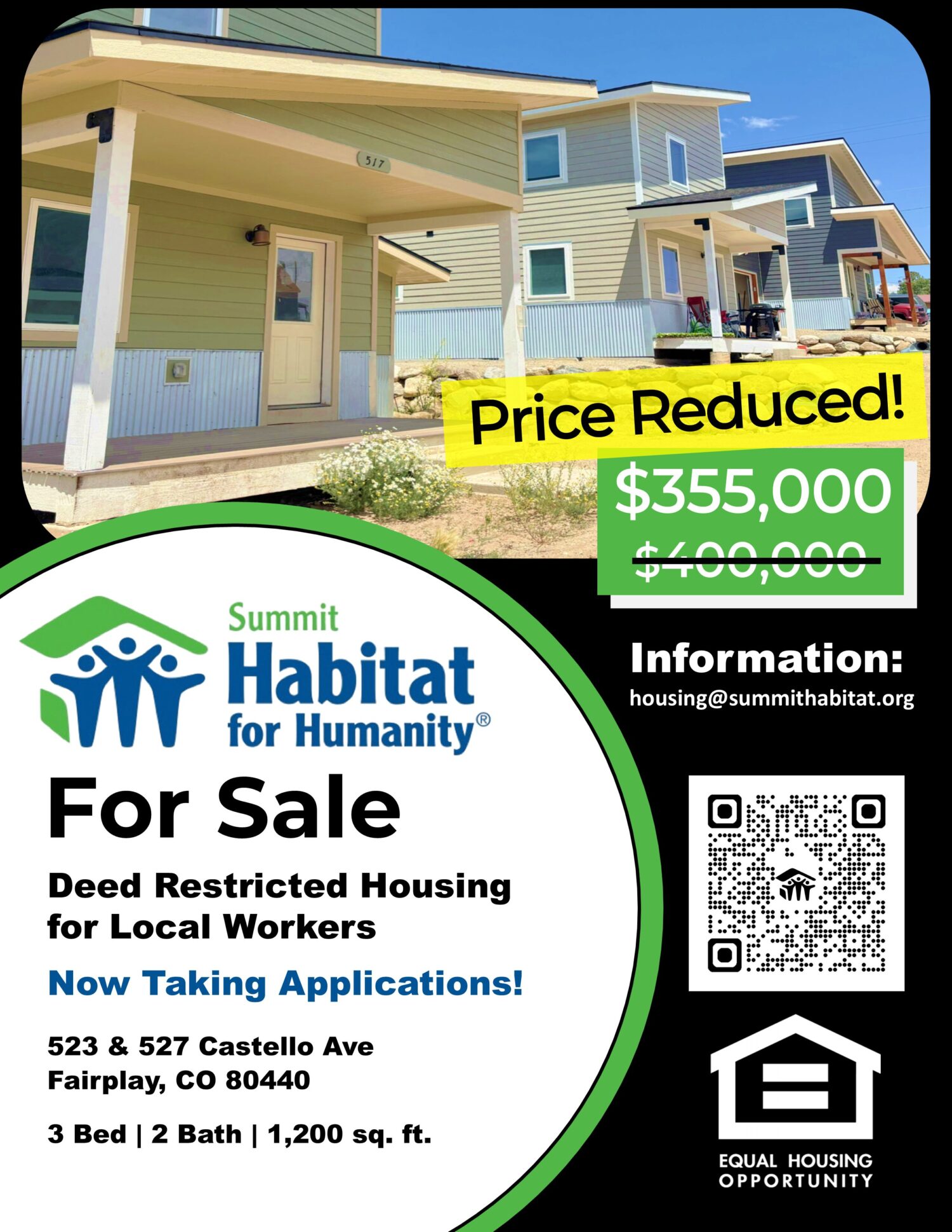 Summit Habitat for Humanity is offering an incredible opportunity for homeownership in Fairplay, CO! These deed-restricted, 3-bedroom, 2-bathroom single-family homes will be completed in 2026 and will feature ~1,200 square feet of living space and attached one-car garages. No HOA Fee! As part of the Habitat for Humanity program, these homes are designed to provide an affordable housing option for qualified buyers. Income verification is required, and all applicants must meet specific eligibility criteria. The selection process includes an application, financial review, and commitment to Habitat’s partnership program. Don’t miss this chance to own a quality-built home in a beautiful mountain community!