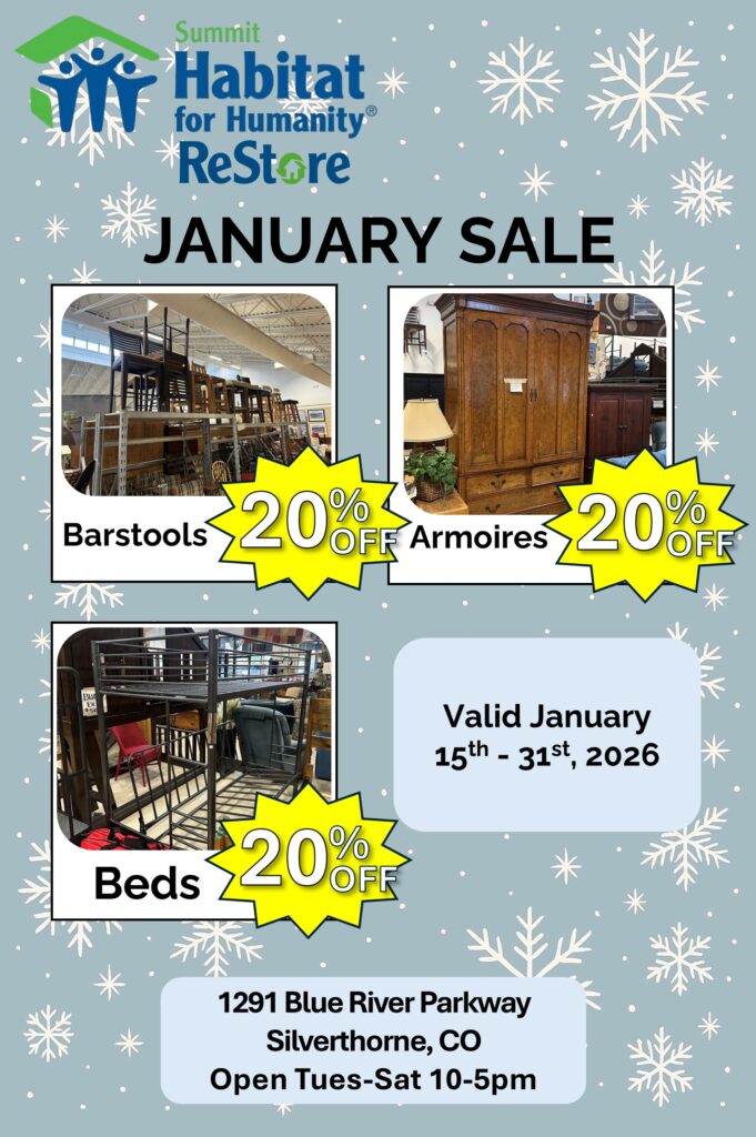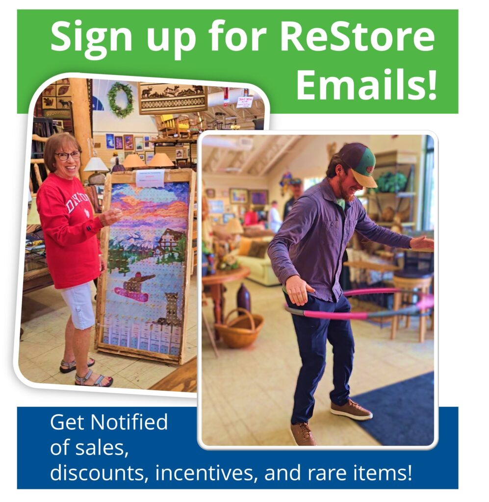 We occasionally have sales and discounted offers on items we sell in the ReStore, especially if we receive an excess of a specific type of item. To stay informed, please subscribe to our email list!