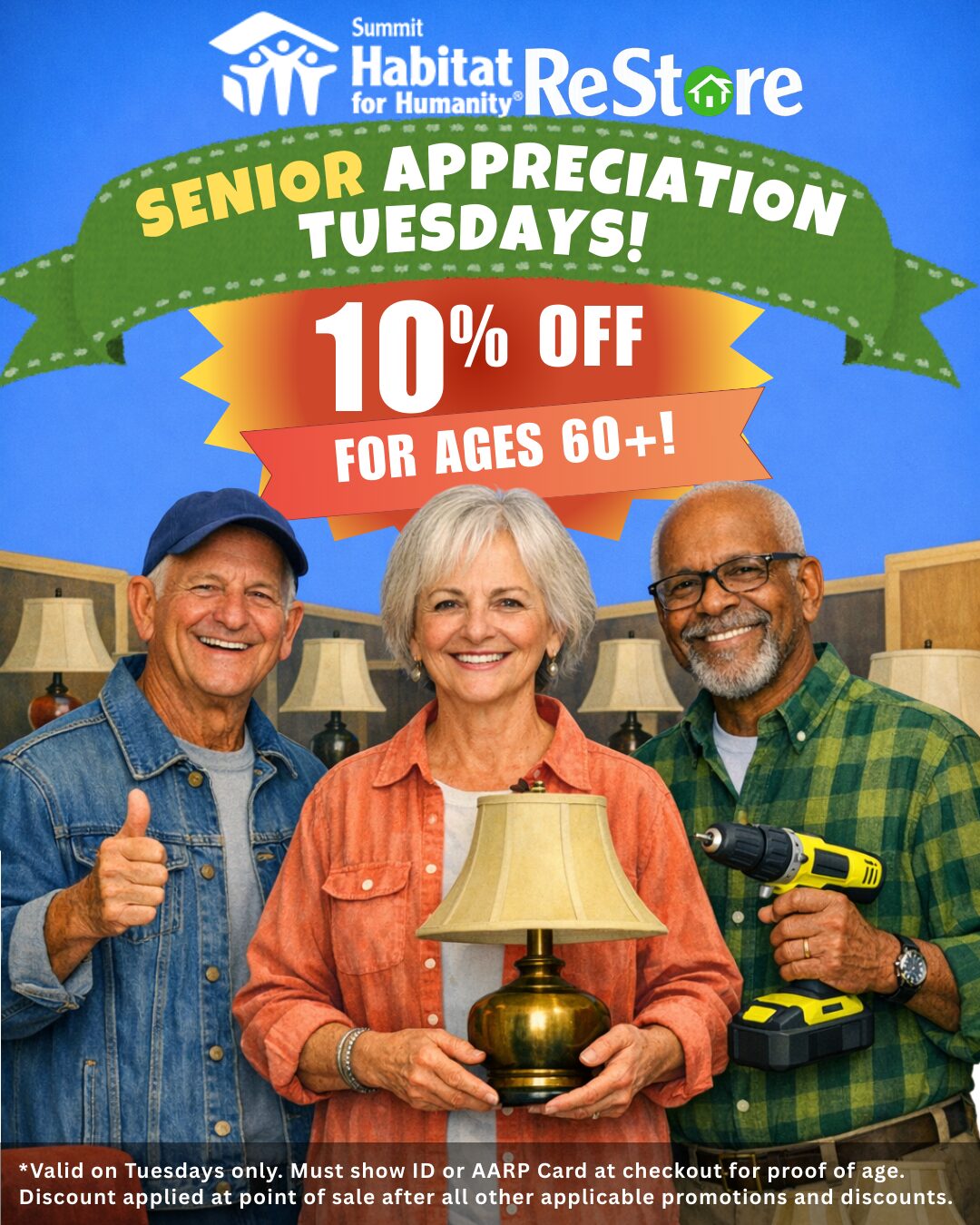 We occasionally have sales and discounted offers on items we sell in the ReStore, especially if we receive an excess of a specific type of item. To stay informed, please subscribe to our email list! Subscribe to Summit ReStore Email List!
